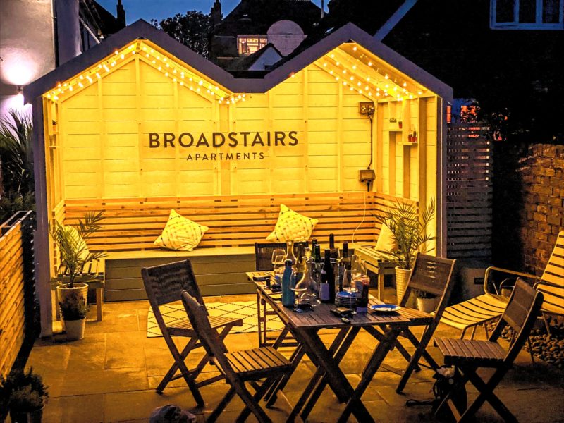 The Covid pandemic had the Maybank Homes team putting their thinking caps on over the summer. We wanted to find a way for people to socialise safely during their stay our sister business Broadstairs Apartments We are now pleased to present a brand new communal outdoor space that the guests are loving already! In fact, we wish we’d thought of it sooner as it’s a great way spend some time outside away from the crowds.