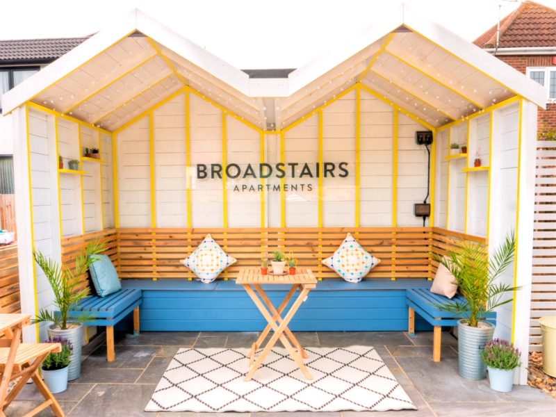 The Covid pandemic had the Maybank Homes team putting their thinking caps on over the summer. We wanted to find a way for people to socialise safely during their stay our sister business Broadstairs Apartments We are now pleased to present a brand new communal outdoor space that the guests are loving already! In fact, we wish we’d thought of it sooner as it’s a great way spend some time outside away from the crowds.